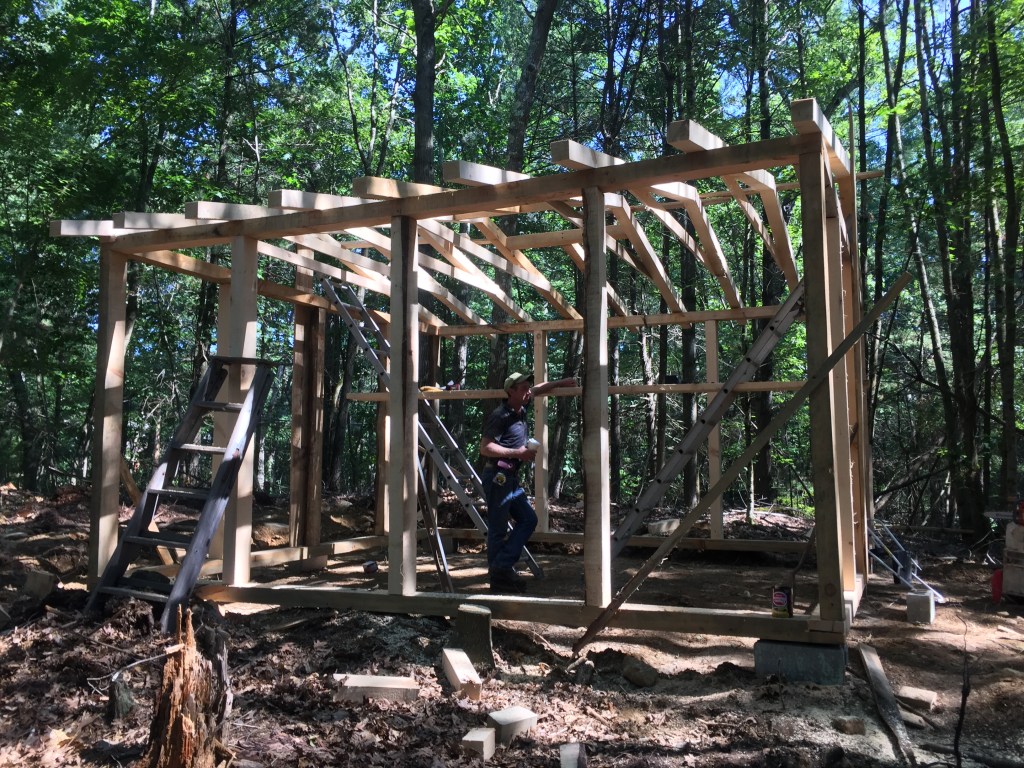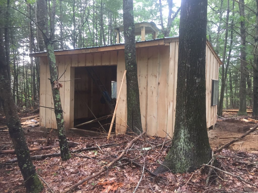 We milled most of the pine for the sugar house in a few days and considering there were three of us involved in various stages, we made fast progress. The board & batten design is our signature build. The windows and doors were free on Craigslist.